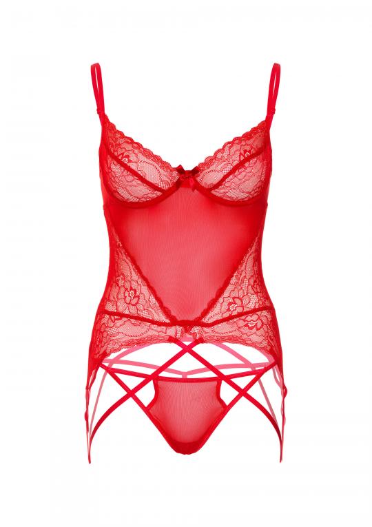 Rendete la vostra serata ancora più sexy con questo splendido set di cami in pizzo e rete. Questo set è caratterizzato da coppe in pizzo trasparente, bretelle regolabili e perizoma coordinato.