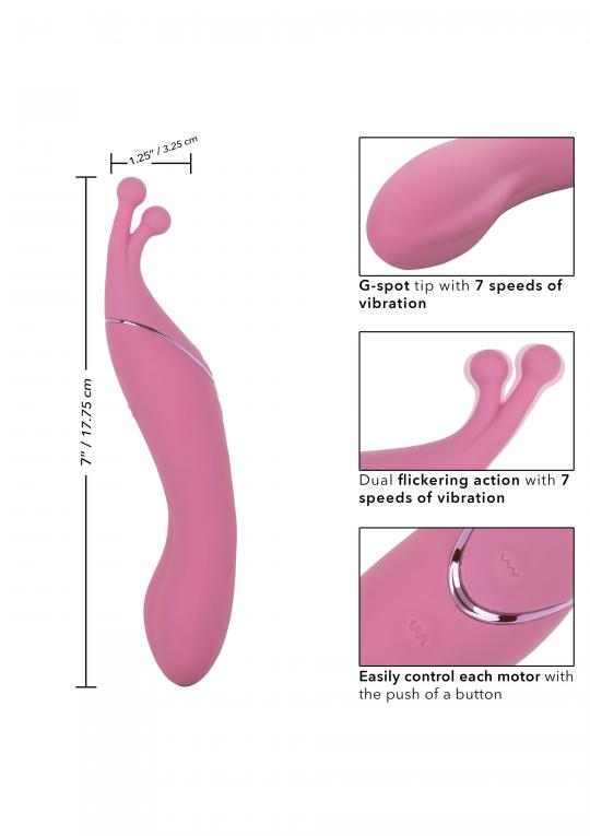 The Tempt and Tease Kiss è un massaggiatore a doppia faccia che sa esattamente cosa desideri. Senti l'aumento di calore con il doppio stimolatore con due punte distintive, due potenti motori e 7 funzioni di vibrazione controllate in modo indipendente. Con una forma versatile e due potenti motori a vibrazione a ciascuna estremità, raggiungerai nuove vette climatiche in pochissimo tempo. Solletica e stuzzica esternamente con i morbidi rompicapo tremolanti o immergiti in profondità nella stimolazione interna rumorosa con il lato G curvo. Scegli il tuo stile di piacere con due motori controllati indipendentemente su ciascuna estremità di questo massaggiatore a doppia faccia e non ti stancherai mai di questo massaggiatore sexy.