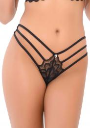 Perizoma donna in pizzo nero intimo aperto con perle String