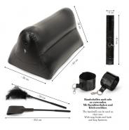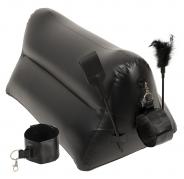 Meraviglia posizionale accattivante! Questo cuscino dell'amore è perfetto per tutte le coppie che vogliono sperimentare nuove posizioni o un bondage leggero. Si gonfia rapidamente e può essere usato in molte posizioni per un divertimento sessuale condiviso. Su ogni lato offre la possibilità di attaccare le manette incluse tramite un moschettone. In combinazione con il paddle incluso e l'asta a molla vi invita a eccitanti giochi di bondage o sessioni di sculacciate. E se nella foga del momento dovesse apparire un piccolo buco, questo viene richiuso rapidamente con i 2 cerotti di riparazione e la colla. L 60 cm x L 36 cm x H 36 cm. PVC, metallo, PU. Contiene componenti non tessili di origine animale.