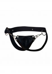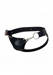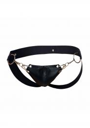 Il sospensorio a scatto è realizzato in resistente ecopelle in nero lucido. Con una copertura minima sul retro, il sudore può evaporare più liberamente offrendo a chi lo indossa una vestibilità più confortevole. Una custodia a catena nella parte anteriore sostiene il pene senza lesinare sul sex appeal, mentre le cinghie larghe si trovano sui fianchi per una finitura di supporto.
