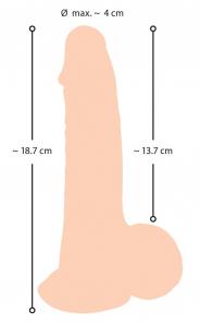 Lunghezza totale 18,7 cm, lunghezza d'inserimento 13,7 cm, Ø max. 4 cm. Peso 284 g. TPE.