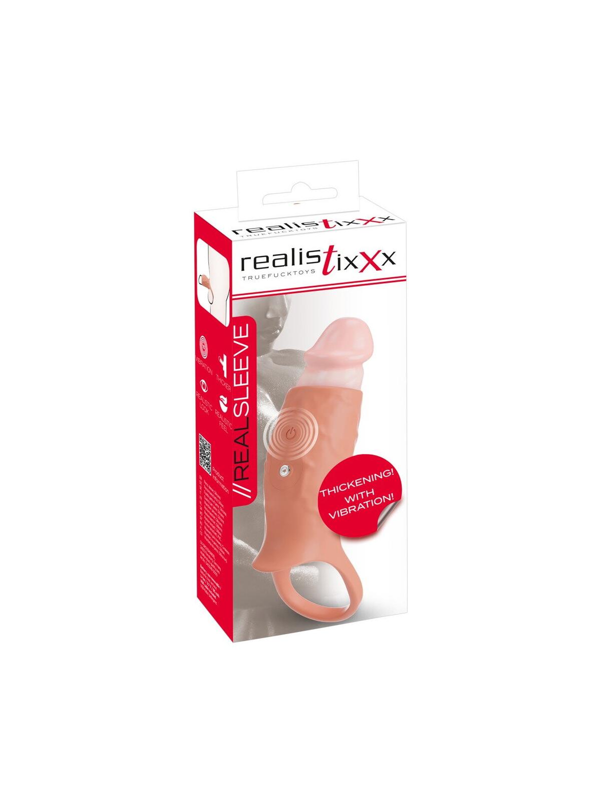 Ispessisce il pene e lo fa vibrare! La guaina per pene RealSleeve Open di Realistixxx riporta il pene in forma in modo rapido e semplice, per momenti di piacere appaganti. Inoltre, le intense vibrazioni forniscono un'eccitante stimolazione aggiuntiva. La guaina aderente, che sostiene l'erezione, si infila semplicemente sul pene ed è molto comoda da indossare. Il glande sensibile è esposto per una maggiore sensazione. Il bracciale aperto è adatto a qualsiasi lunghezza del pene. L'anello elastico per testicoli garantisce una vestibilità sicura senza scivolare. Realizzata in silicone morbido come la seta con sottili venature, la guaina del pene ha un aspetto molto realistico e una sensazione di vita e morbidezza al tatto. Elastica in ogni sua parte, si adatta a ogni pene. Grazie allo spessore del materiale e all'unità di vibrazione piatta e leggera, la circonferenza del pene risulta notevolmente aumentata. 10 modalità di vibrazione possono essere facilmente controllate premendo un pulsante direttamente sul manicotto. Ricaricabile - cavo di ricarica USB incluso.