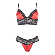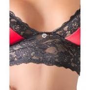 Un sogno di pizzo che compone questo completino intimo composto da 2 pezzi Slip perizoma e reggiseno . Il perizoma e dotato di apertura intima anteriore realizzata con avvolgente merletto . Il reggiseno e slip sono realizzati in raso e pizzo rosso . Il reggiseno ha una striscia larga di pizzo nero sotto il seno e un piccolo cuore di strass sulla parte anteriore . Le Cinghie sono regolabili. Colore rosso e nero .Realizzato in poliammide ed elastan.