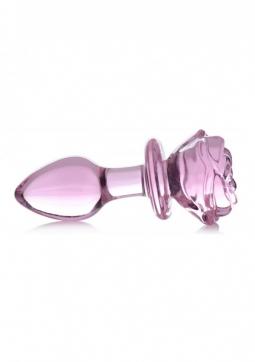 Glass Medium Anal Plug - Pink Rose