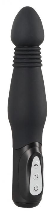 Vibratore anale con funzione shock integrata! Il vibratore anale con punta a cono e albero bulboso ha 7 modalità di vibrazione e 3 velocità di shock che possono essere controllate separatamente. Nero. Lunghezza totale 23,5 cm, profondità d'inserimento 15,5 cm, Ø 2,5-4,4 cm. Materiale: silicone con rivestimento in PU, ABS. Si prega di ordinare le batterie separatamente: 3 x AAA