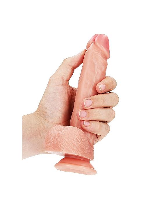 Il Real Rock è progettato per farti divertire al massimo. Un dildo solido e morbido al tatto, dall'aspetto naturale e delle dimensioni giuste. In combinazione con le vene realistiche sull'asta, che danno una stimolazione extra all'interno, questo è un dildo che non dimenticherai nel tuo comodino. Questo dildo realistico ha una leggera curva, che lo rende ideale per la stimolazione del punto G. Goditi questo modello dentro e fuori! Lo scroto e il glande ben proporzionato sono i dettagli che rendono l'utilizzo di questo dildo così realistico. La ventosa consente un uso resistente a mani libere (su una superficie liscia) e offre anche la possibilità di utilizzare questo RealRock in un'imbracatura. Con tutte queste opzioni, avrai un orgasmo esplosivo a cui non mancherà nulla.