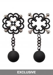 Pressa per capezzoli pesata Power Grip a 4 punti. Esplorate sensazioni elevate con i 2 morsetti multiuso completamente regolabili, la pressa a 4 punti avvitata e i pesi per stuzzicare. Raggiungete nuovi livelli di piacere giocoso con il pressa capezzoli a 4 punti con viti completamente regolabili ricoperte da un rivestimento in silicone Power Grip. Stringete i morsetti birichini al capezzolo o in qualsiasi punto del corpo e godetevi ogni scarica di dolore e piacere ad ogni strattone o oscillazione dei pesi. Il morsetto stuzzicante ha 4 punti di tensione completamente regolabili per stimolare qualsiasi punto del corpo per stuzzicare in modo giocoso. Man mano che si stringe la tensione, i brividi si intensificano a ogni giro di vite, per il massimo della stimolazione dei capezzoli. Questi stimolatori per capezzoli, facili da usare, sono ideali per lui, per lei o per loro.