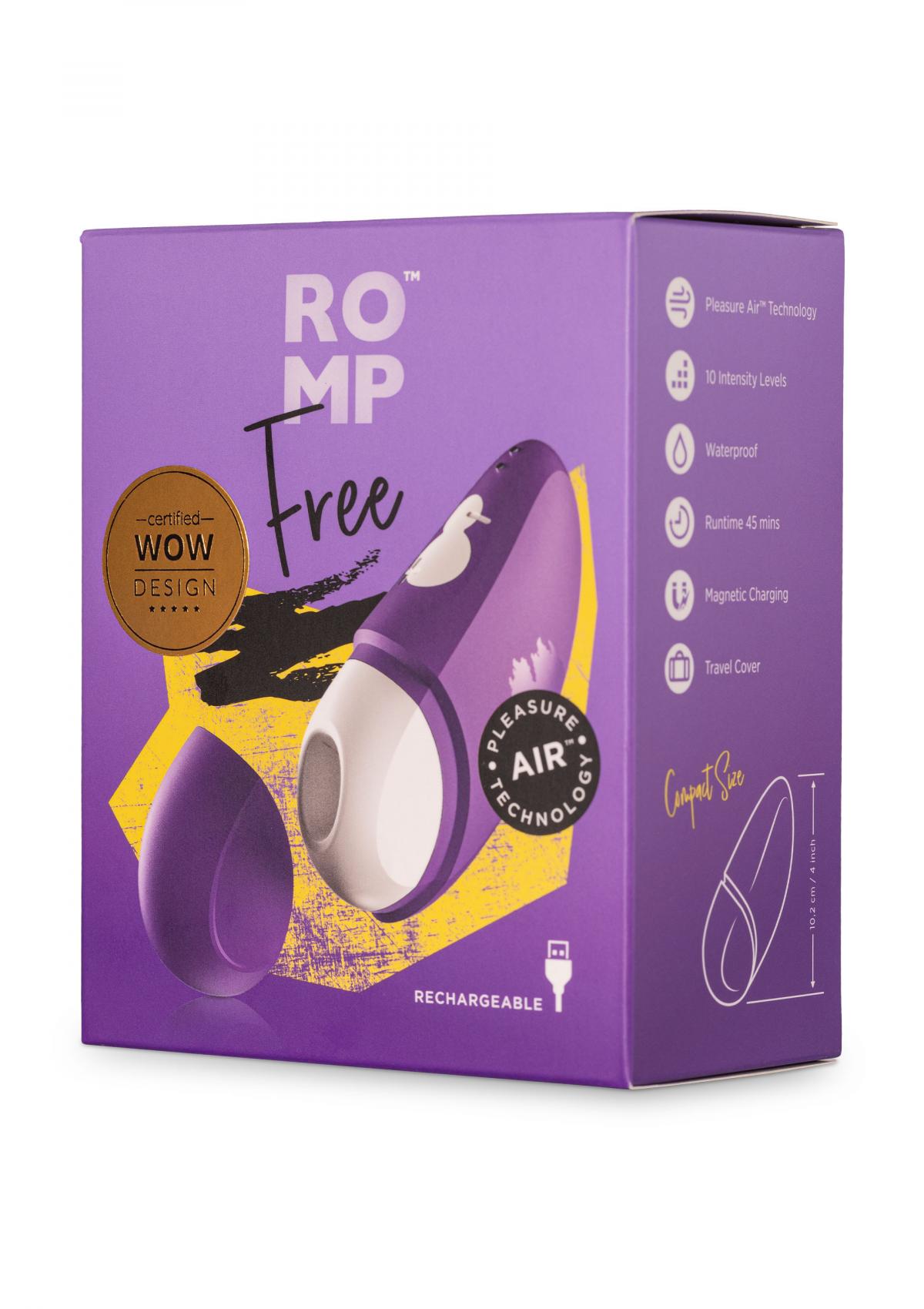 Goditi le avventure ovunque e in qualsiasi momento. ROMP Free è uno stimolatore clitorideo da viaggio - con l'esclusiva Pleasure Air Technology. Stimola il clitoride con sottili variazioni di pressione dell'aria e 10 livelli di intensità - il tutto mentre provi un piacere diverso da qualsiasi cosa tu abbia mai provato prima. Parti senza pensieri, perché puoi portare ROMP Free ovunque tu voglia andare - grazie alla custodia da viaggio igienica. La libertà è il nostro bene più grande - così, naturalmente, è la libertà di vivere la propria sessualità. ROMP Free ti aiuta ad aggiungere un po' di pepe al tuo programma personale di coccole. Dotato di una pratica custodia, questo stimolatore clitorideo è il perfetto compagno di viaggio. Basta metterlo in tasca e regalarsi una nuova sensazione ovunque ci si trovi.