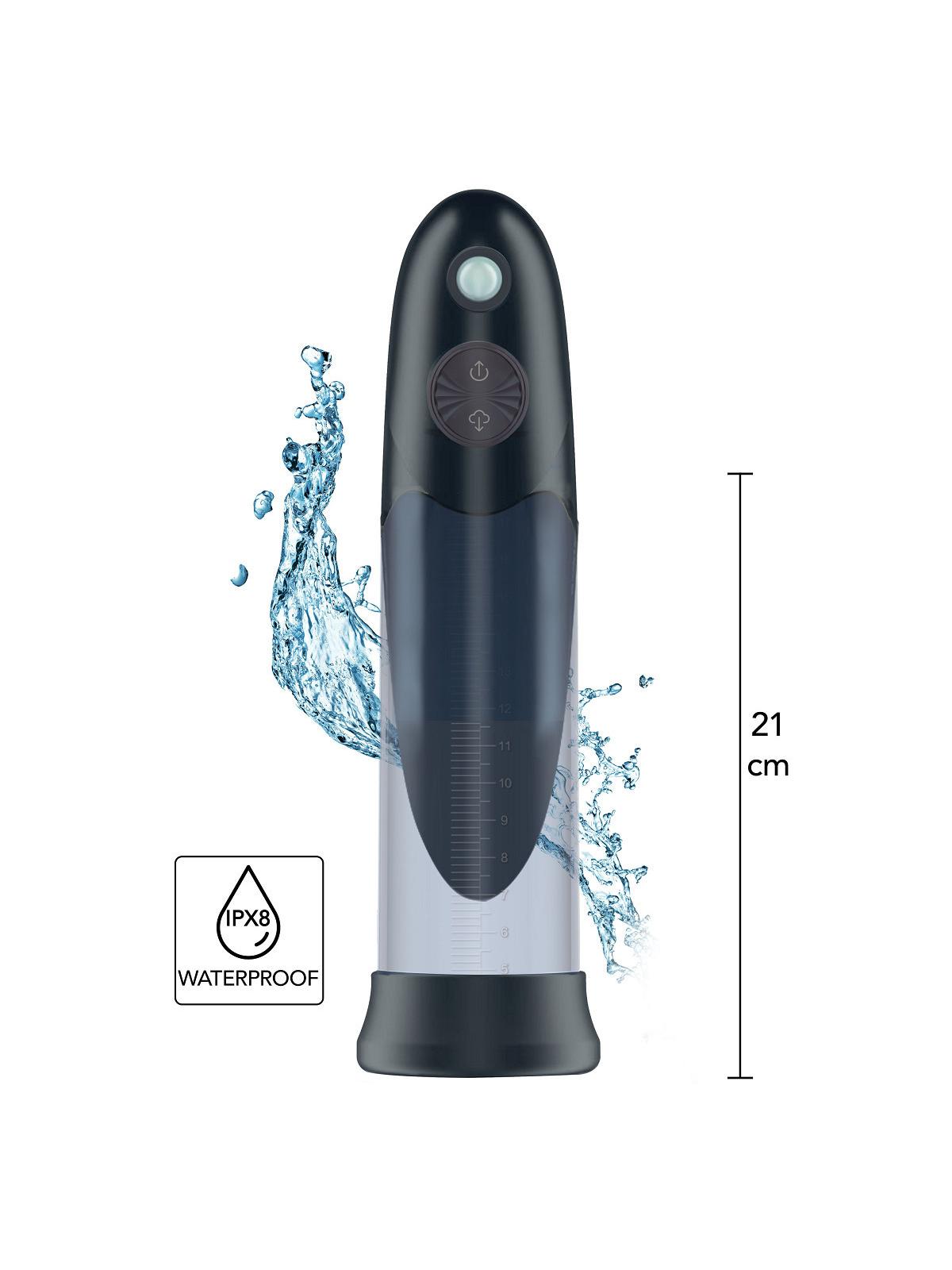 FUSION X di HIDDEN DESIRE è l'ultima collezione di pompe per il pene, realizzata per coloro che osano spingersi oltre i confini del piacere. Questa pompa automatica per il pene Aqua è impermeabile al 100% e offre prestazioni eccezionali se utilizzata nella vasca da bagno, nella doccia o in piscina. A differenza delle pompe ad aria, utilizza l'acqua, garantendo una pressione costante per un'espansione uniforme dei tessuti. Questo approccio rivoluzionario non solo aumenta le dimensioni e la circonferenza del pene in modo molto confortevole, ma favorisce anche una migliore circolazione sanguigna del pene, con conseguenti erezioni più solide. Questa pompa non solo può essere utilizzata con l'acqua, ma può anche funzionare come una qualsiasi pompa ad aria, rendendola ideale per l'uso in camera da letto e non solo. È sufficiente infilare il pene nel tubo, tenerlo stretto contro l'inguine e avviare il motore di pompaggio automatico! Selezionate la modalità di aspirazione più confortevole e guardate il vostro pene diventare più grande e più duro ad ogni pompata! Le linee di misurazione sul tubo vi aiuteranno a monitorare i vostri progressi. Preparatevi ad aumentare le vostre dimensioni e la vostra sicurezza con FUSION X PENIS PUMPS!