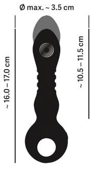 Spinta extra forte! Il pratico vibratore ETERNAL Strong Thrusting di You2Toys ha un aspetto elegante e una consistenza morbida e setosa. La punta vibrante dell'albero solido spinge con forza ancora e ancora! Due motori potenti e silenziosi forniscono 10 modalità combinate di spinta e vibrazione. Le modalità possono essere comodamente controllate premendo un pulsante sulla pratica impugnatura ad anello. Anche nella vasca da bagno e nella doccia, perché il vibratore extra potente è impermeabile. Ricaricabile - cavo di ricarica USB incluso. Lunghezza totale 16-17 cm, lunghezza di inserimento 10,5-11,5 cm, Ø 2,2 cm - 3,5 cm. Peso 99 g. Silicone, PU, ABS.
